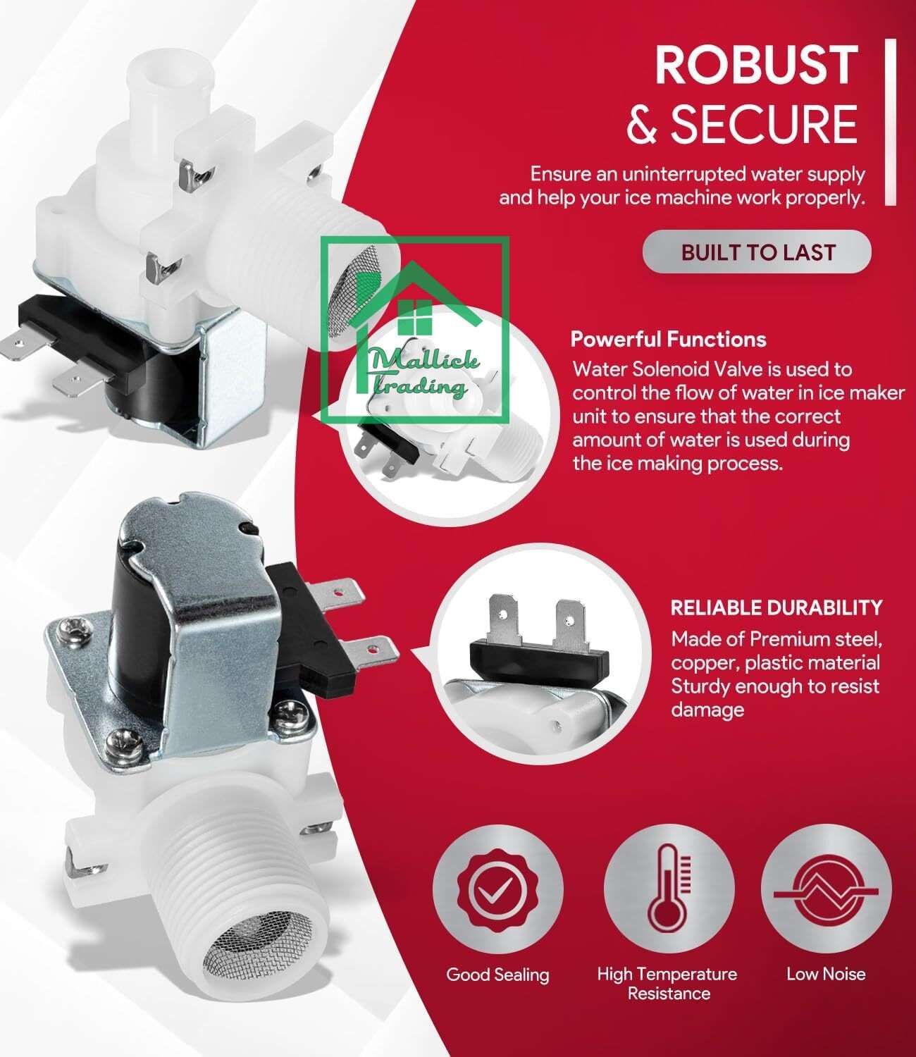 Washing machine inlet valve. solenoid valve, water inlet valve, AC 220V/240V, BSPP 3/4”, washer water inlet electric solenoid, water solenoid valve replacement.